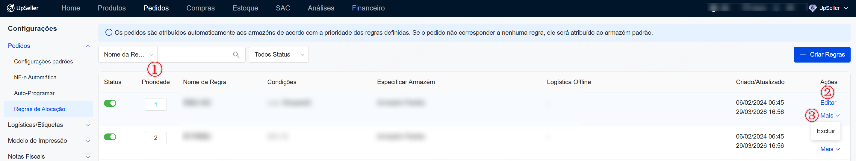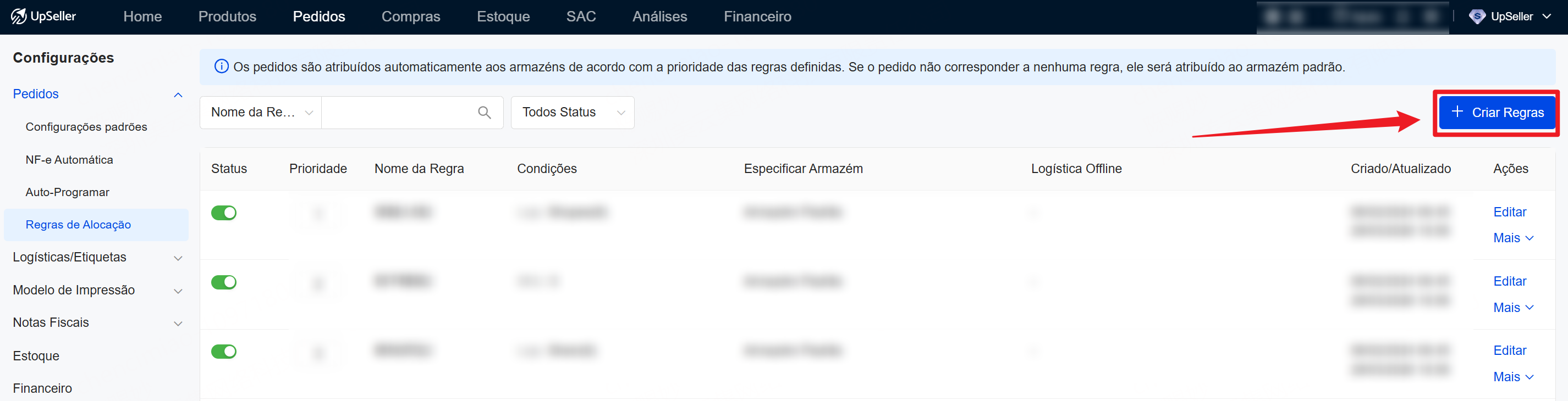 Passo 1: Criar Regras (uma conta UpSeller pode criar até 50 regras.)