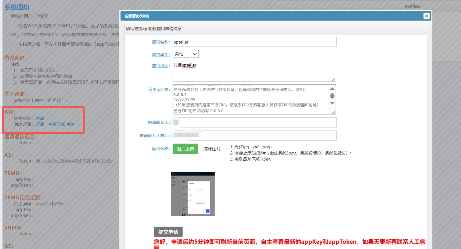 在将第三方仓库授权给UpSeller时,需要前往其提供的OMS系统里获取授权秘钥(Token、appKey、userKey等)并将其输入二、不同OMS系统获取授权秘钥的操作