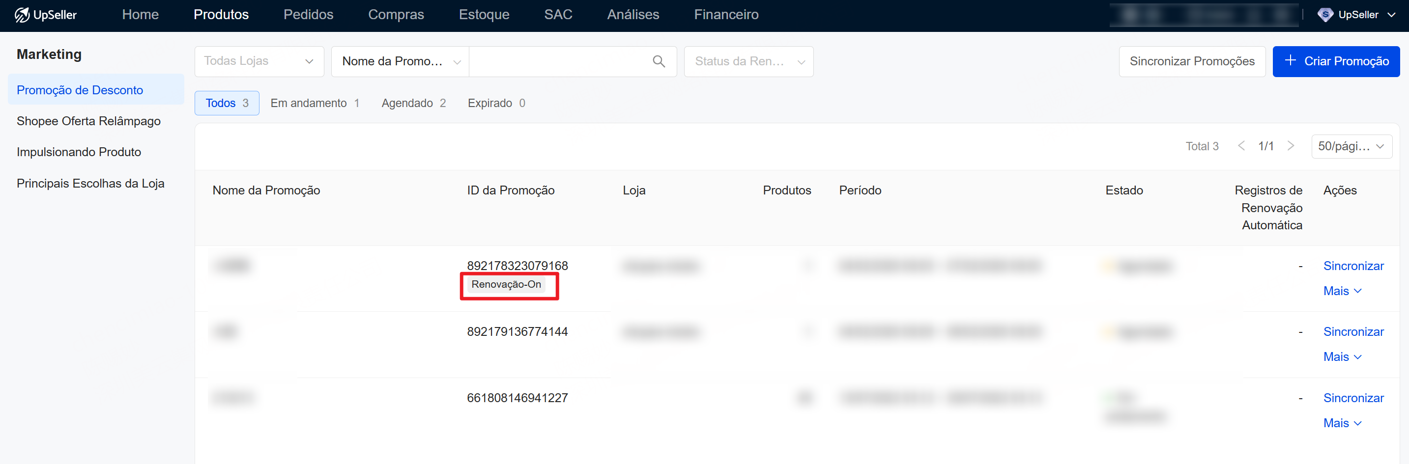 OBS: se você criou uma promoção na Shopee, mas o UpSeller não mostra a promoção, você pode clicar no botão "Sincronizar Promoções"