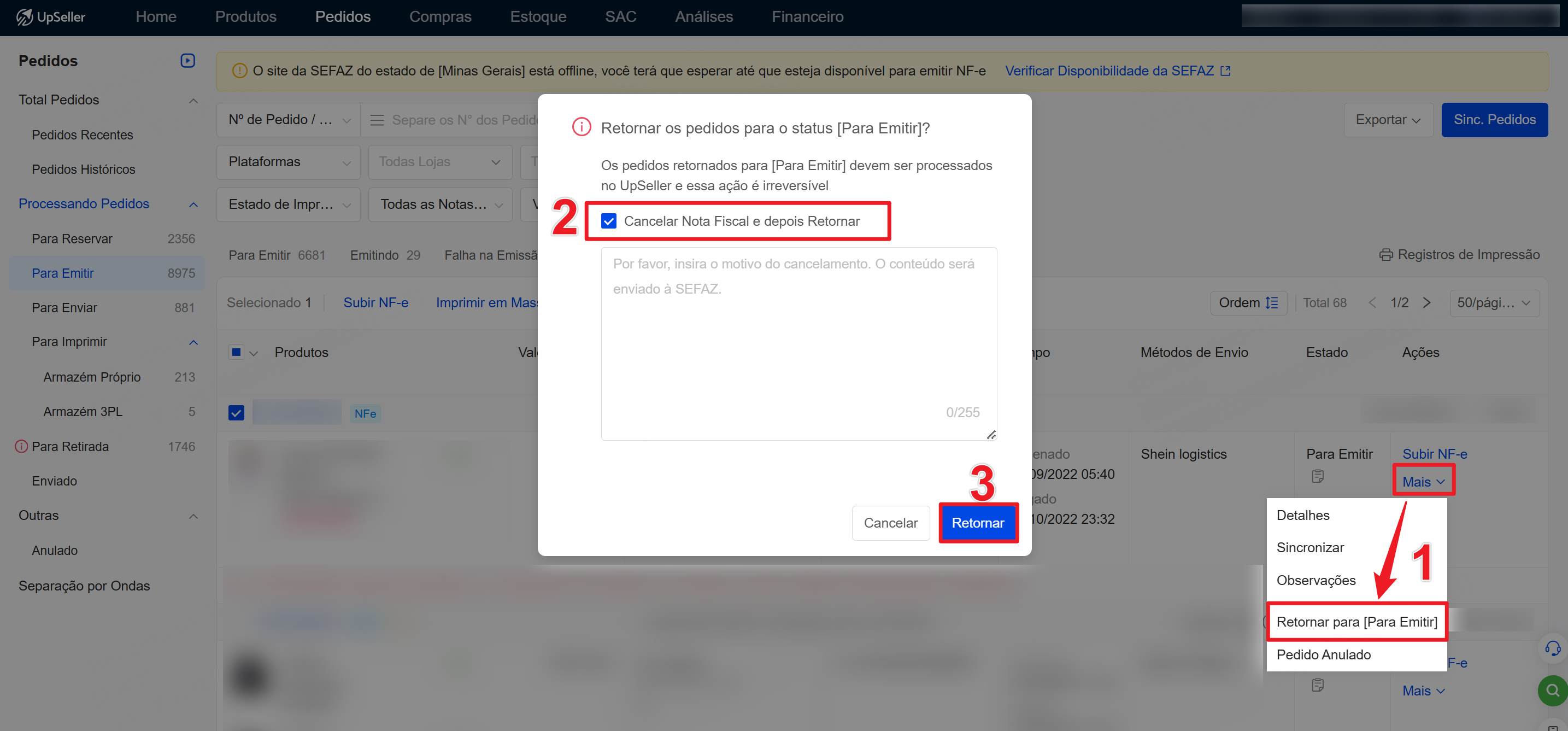 4. Apenas a NF-e emitida através do UpSeller pode ser cancelada no UpSeller